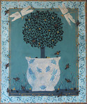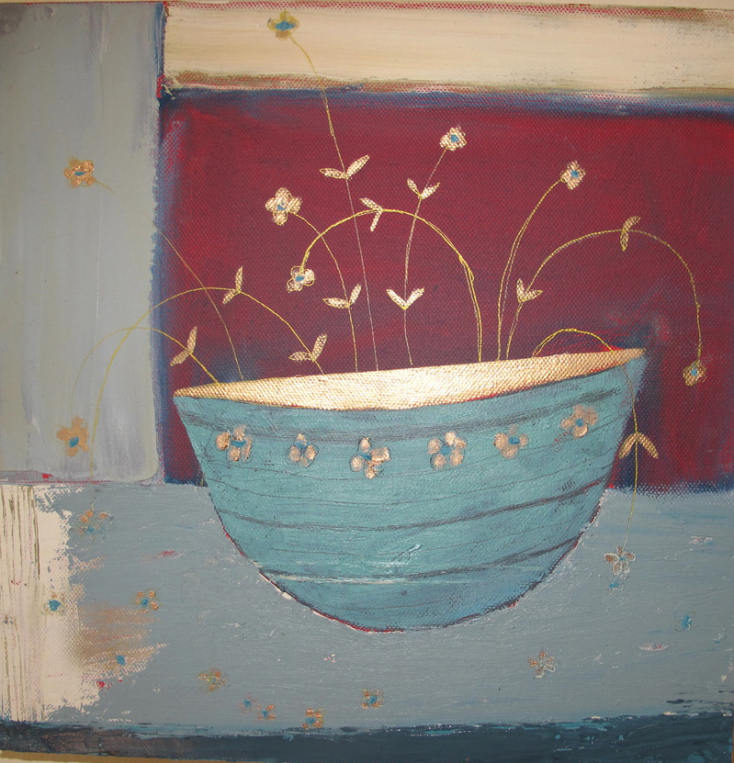 Blue China Container with dried flowers - gesso, acrylic 20x20cms SOLD