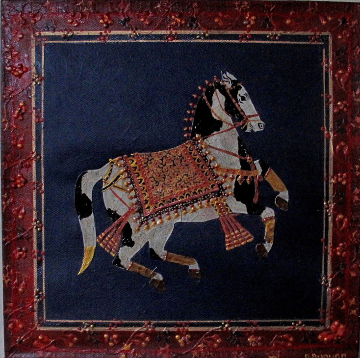 Mughal Horse 1 gesso/oil/acrylic 60x50cms SOLD