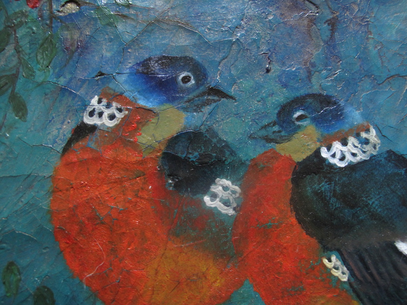 Two Chinese Pigeons - oil/gesso 25x25cms