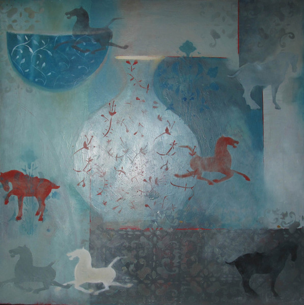 Chinese Horse with Dragon Corners - oil,gesso, acrylic 25x25 £150