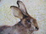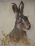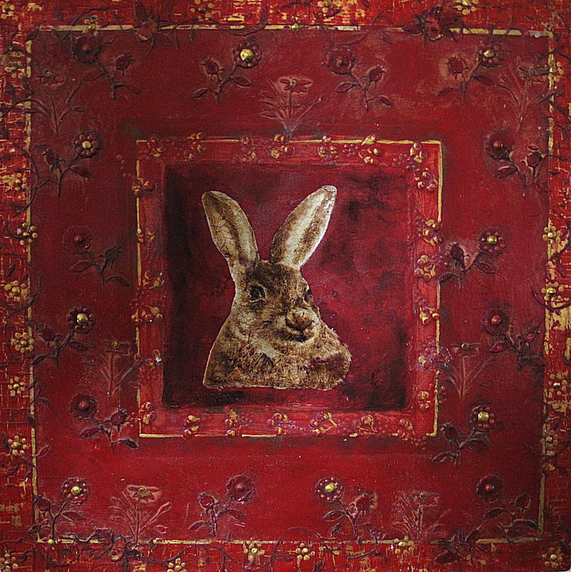 Hare in Floral Frame gesso, oil, acrylic 25x30cms SOLD