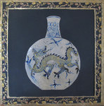 Chinese Vase with Blue Dragon Corners 2- detail 30x30cms